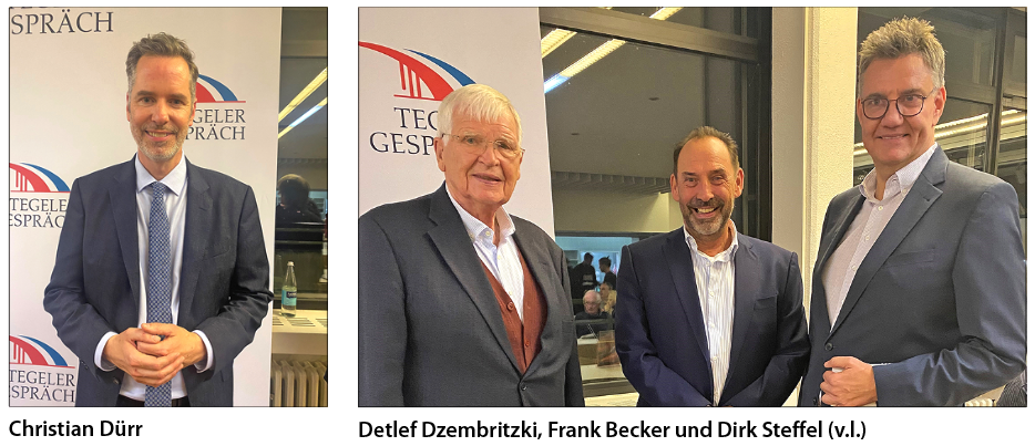 „Es war ein rundum gelungener Abend; sehr interessant und kurzweilig“, sagte Dirk Steffel. Der Vereinsvorsitzende ist schon an der Organisation des nächsten Tegeler Gesprächs – dann am 28. November mit Boris Palmer, Oberbürgermeister der Stadt Tübungen.