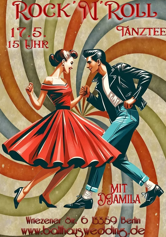 Der Rock’n’Roll-Tanztee mit DJamila markiert ihr Debüt mit einem durchgehenden Musikprogramm im Stil der 1950er- und 1960er-Jahre. Im Mittelpunkt stehen Tanzformen wie Rock’n’Roll, Jive und Boogie Woogie.