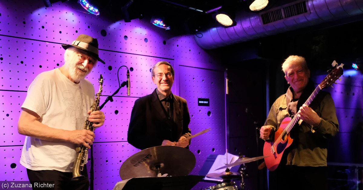 Das MAUER BLUES TRIO mit Joe Kučera (Saxophon), Carlos Mieres (Gitarre) und Andrea Marcelli (Schlagzeug) spielt Jazz- und Weltmusikkompositionen von Mieres und Kučera.