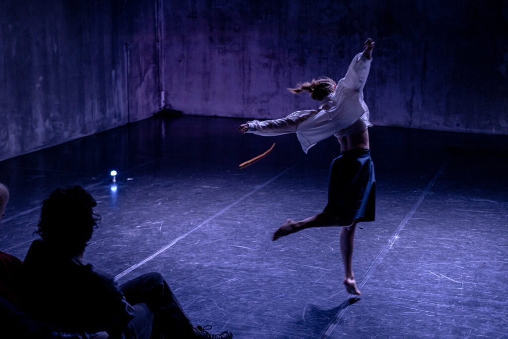 Die Performance verbindet Bewegungen aus Sport und Tanz und untersucht Ausdauer und Resilienz als Formen von Stärke, Verletzlichkeit und gemeinsamem Ausdruck.
